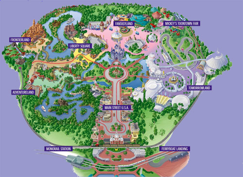 Here is an interactive map of Magic Kingdom.